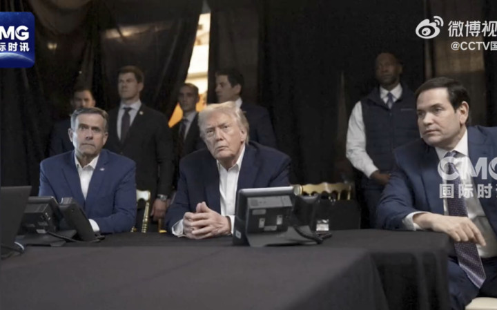 1月3日,好意思国总统特朗普(中)、中央谍报局局长拉特克利夫(左)和国务卿鲁比奥(右)在佛罗里达州海湖庄园监控好意思军对委内瑞拉的军事行径。